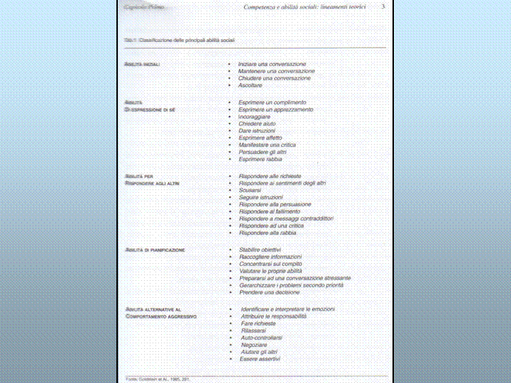 Ancora sulla stessa linea, Di Nuovo (1989, 3) considera le abilità sociali come