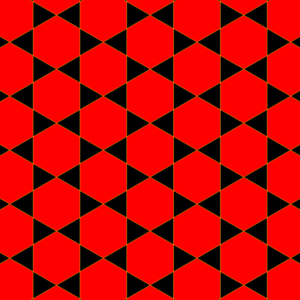| Ecco cosa si ottiene dalla precedente tassellazione merlettando esagoni e triangoli |